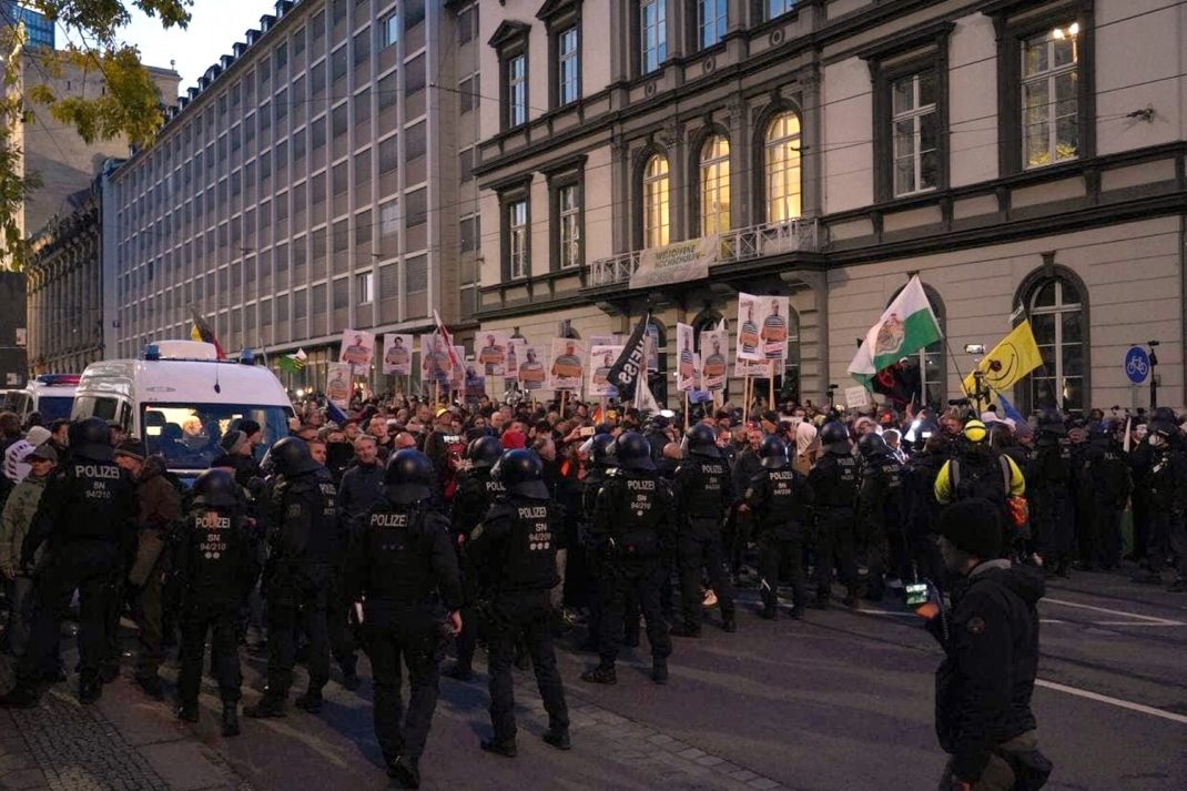 Nicht selten waren bei den Versuchen, eine Polizeiabsperrung zu überwinden, augenscheinliche Rentnerpärchen ganz vorne mit dabei. Auch die verbalen Unmutsbekundungen, die bis zu Todesdrohungen reichten, stammten meist nicht von Personen, die der Neonaziszene zuzuordnen sind.