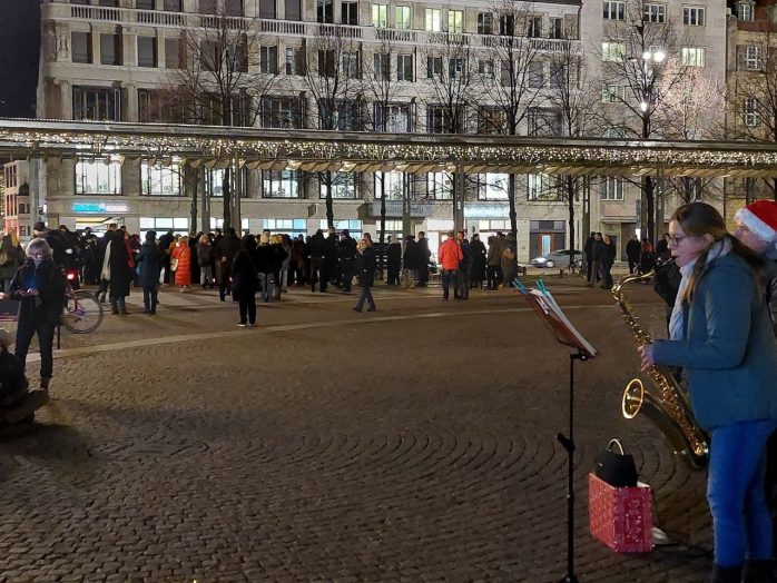 Verkehrte Welt am 17. Dezember 2021 auf dem Leipziger Augustusplatz. Von Abstellen der Kerzen und wieder entfernen der Menschen ist auch nichts zu sehen – ein weiteres Mal lässt sich der Rechtsstaat an der Nase herumführen und zeigt, wie wenig ernst er sich selbst und seine Regeln in der Coronakrise nimmt.