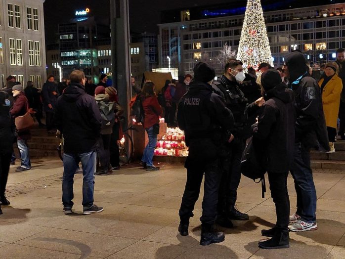 Damit wäre also schon mal geklärt, dass hier jene, die sich nicht an die aktuellen Coronaschutz-Gesetze halten, den Schutz der Polizei genießen, ihre Kerzen abstellen (und dennoch behalten) dürfen und der Gegenprotest, welcher eine Versammlung ordnungsgemäß als Kleingruppe angemeldet hat, im Zweifel abgeführt wird.