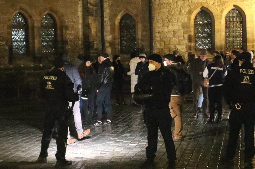 Auf dem Nikolaikirchhof, in der Grimmaischen Straße und vor dem Neuen Rathaus kam es zu Identitätsfeststellungen bei den „Spaziergängern“, welchen durch ihren Verstoß gegen die aktuelle Coronaschutzverordnung nun ein Bußgeld von bis zu 250 Euro droht.