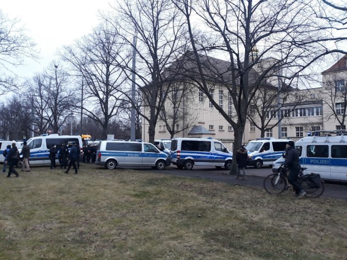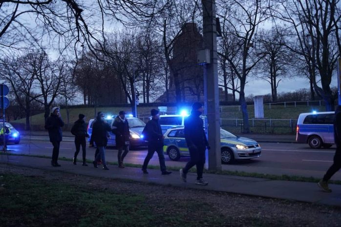 Dahin, wo die letzten noch zwei Stunden später darauf warten werden, dass die Polizei ihre Ausweise sehen will. Denn während die letzten Teilnehmer der Versammlung und des etwa 200 Menschen starken Gegenprotestes die Philipp-Rosenthal-Straße in kleinen Gruppen längst wieder verlassen haben, ist man hier später am Abend immer noch zugange. Medien wie Spiegel und NTV berichten da bereits über den Versuch, aus dem polizeilichen Kessel auszubrechen, welche an einem sonst belanglosen Tag in Leipzig für zumindest etwas Aufmerksamkeit sorgte.