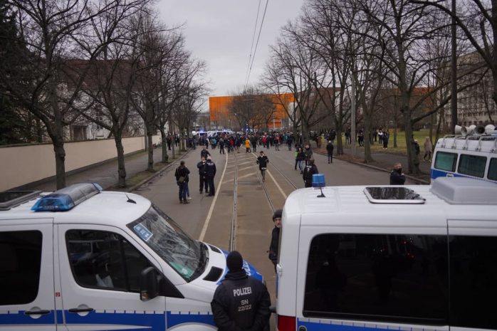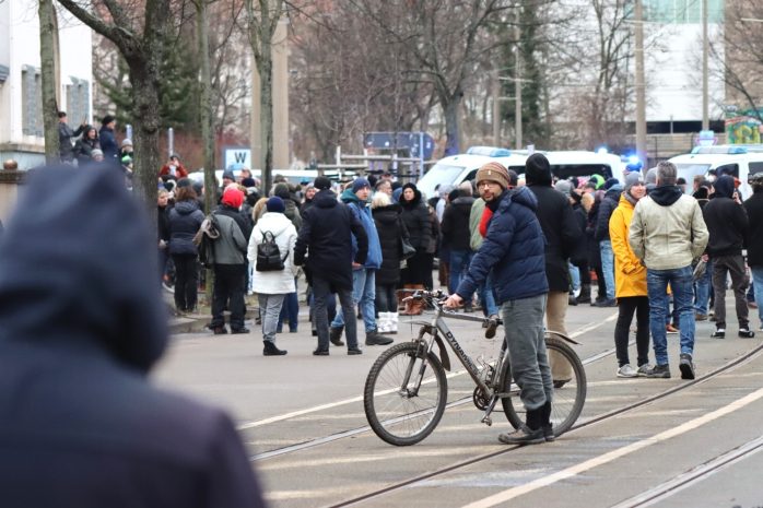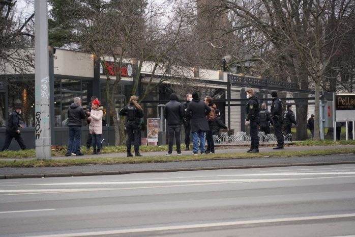 Während es an politischen Zielen oder Parolen von diesem 29. Januar 2022 so gar nichts zu berichten gibt, kamen zumindest bekannte Gesichter der verschwörungsgläubigen bis rechtsextremen Demonstrationskultur Leipzigs zum polizeilich betreuten Stelldichein an die Rosenthalstraße.