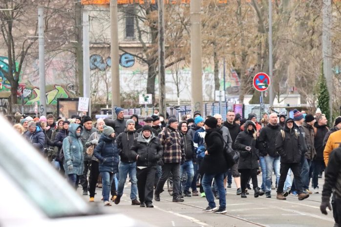 Nachdem bereits in der vergangenen Woche mit Volker Beiser der mehrmalige Anmelder von „Bürgerbewegung Leipzig“-Demonstrationen ein Ex-NPD-Kader in der ersten Reihe lief, waren dieses Mal der „Bewegung Leipzig“-Anmelder von der „Jubiläumsdemo“ am 6. November 2021 (Augustusplatz zusammen mit „Ärzte für Aufklärung“) vor Ort und der ehemalige „Legida“-Beteiligte, Unternehmer und Rechtsextremist Reinhard R. unter den Versammelten.