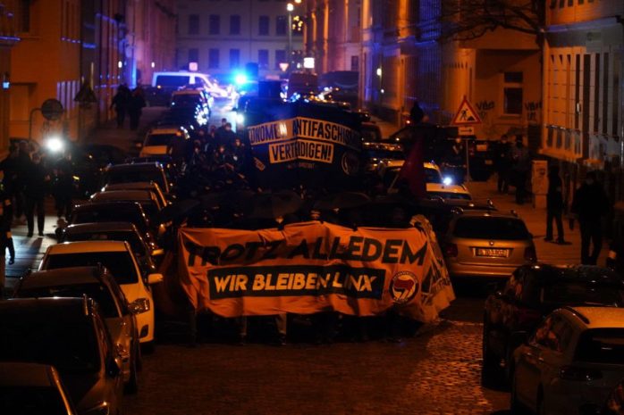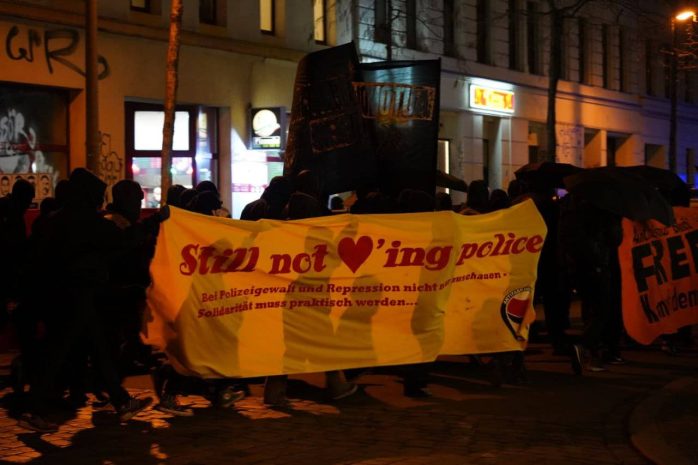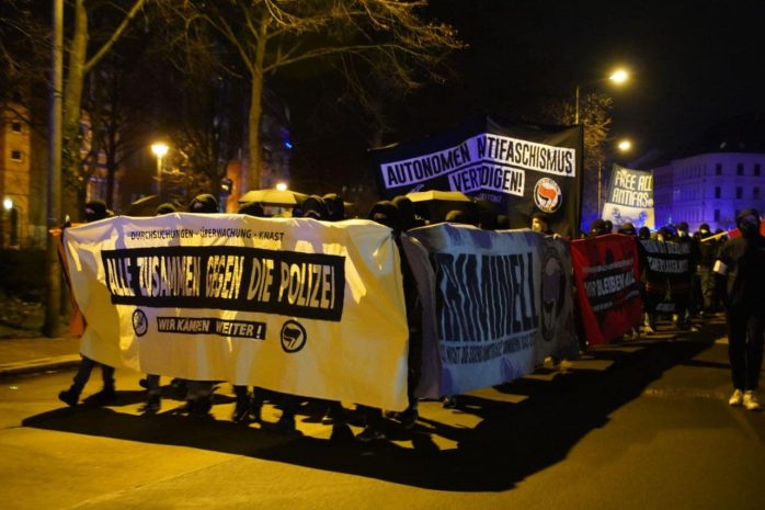 Schon mehrmals in den vergangenen Wochen haben sich linke Demonstrant/-innen am Freitagabend versammelt, um gegen die sächsischen Sicherheitsbehörden zu demonstrieren. Anlass dafür war eine weitere Hausdurchsuchung in Connewitz am 26. Januar dieses Jahres. Es folgten Demonstrationen in Connewitz und in der Innenstadt und nun, am 25. Februar, im Leipziger Osten. Die Demoroute führte an Orten vorbei, an denen linke Aktivist/-innen in den vergangenen Jahren tätig geworden waren.