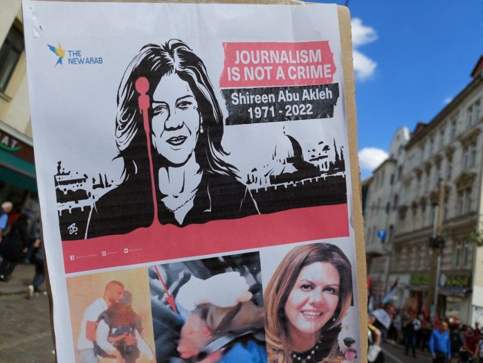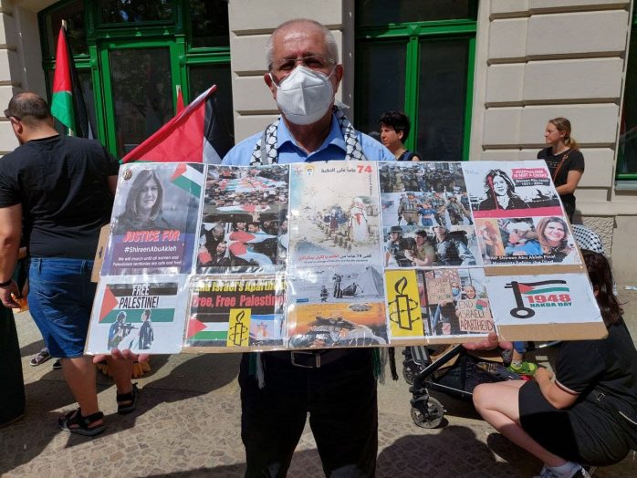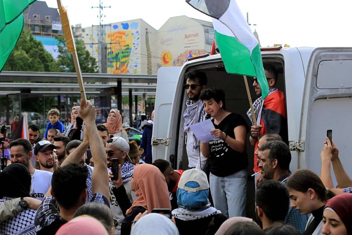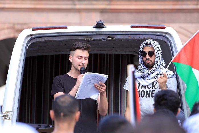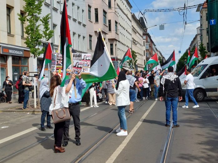 Anlass für die pro-palästinensische Demonstration war die sogenannte Nakba Ende der 40er Jahre. Diese meint die Flucht beziehungsweise Vertreibung von 700.000 Palästinenser/-innen rund um die israelische Staatsgründung am 14. Mai 1948. In einem Redebeitrag hieß es, dass es einen „bis heute andauernden Völkermord an den Palästinensern“ gebe. Auch von „ethnischer Säuberung“ war die Rede.