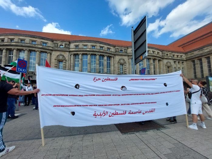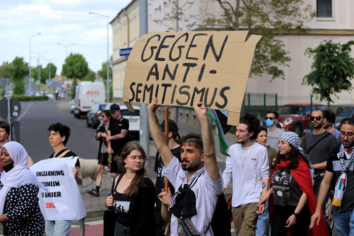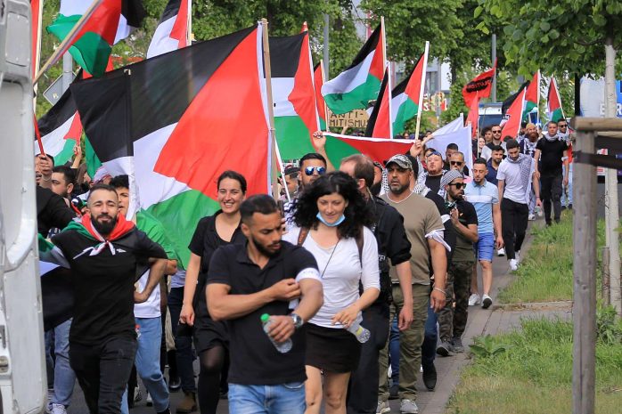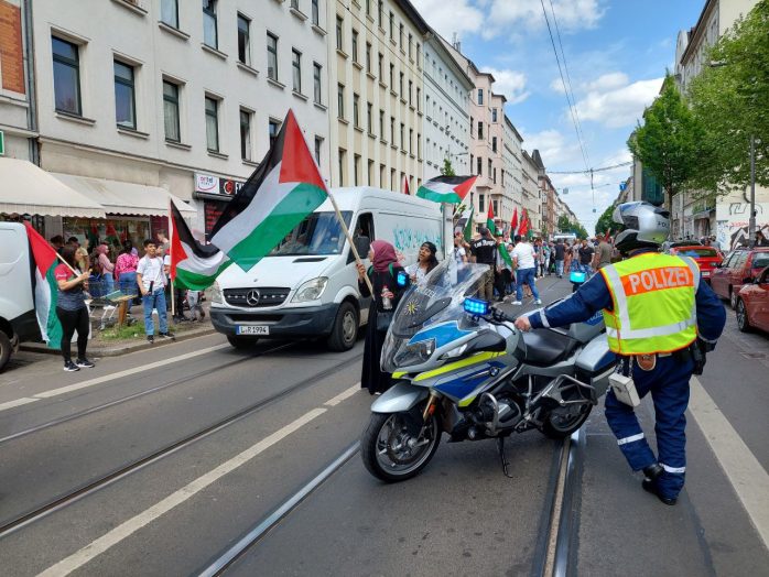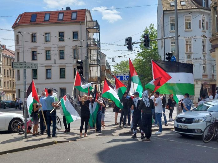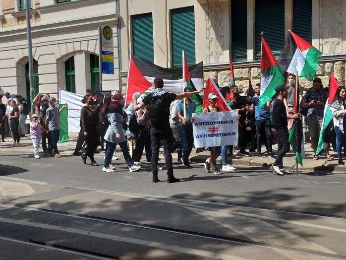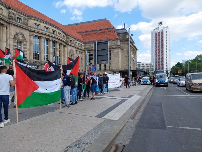 Wie schon im vergangenen Jahr haben anlässlich des sogenannten Nakba-Tages mehrere hundert Menschen in Leipzig demonstriert. Etwa 200 Personen zogen vom Torgauer Platz in die Innenstadt. Sie beklagten eine angeblich bis heute andauernde Unterdrückung von Palästinenser/-innen durch Israel. Am Rande der Demonstration gab es offenbar einen Angriff auf Gegendemonstranten.