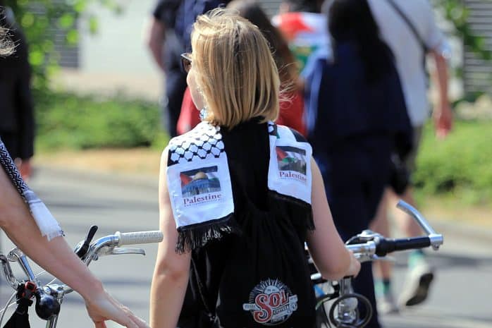 In einem anderen Redebeitrag wurde der Umgang Israels mit Palästinenser/-innen mit dem russischen Angriffskrieg gegen die Ukraine gleichgesetzt. Während es für den Widerstand der Ukrainer/-innen viel Unterstützung gebe, sei dies beim Kampf der von Israel „entrechteten“ Palästinenser/-innen gegen eine „brutale Besatzungsmacht“ nicht der Fall.