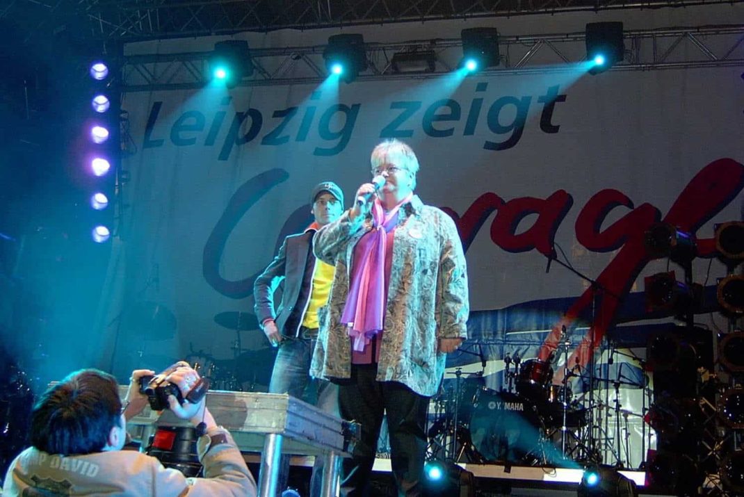 Sie gilt als „Ermöglicherin“ der Konzerte gegen Rechts, die viele Jahre unter dem Motto „Leipzig zeigt Courage“ ab 1998 an jedem Vorabend des 1. Mai die Nazis in die Schranken wiesen. Sie war ab 1991 in erster Reihe bei den wiederbelebten Montagsdemos in Leipzig dabei, mitten im Niedergang der ehemaligen DDR-Wirtschaft und seinem wachsenden Heer von Arbeitslosen.