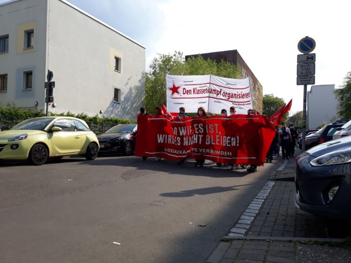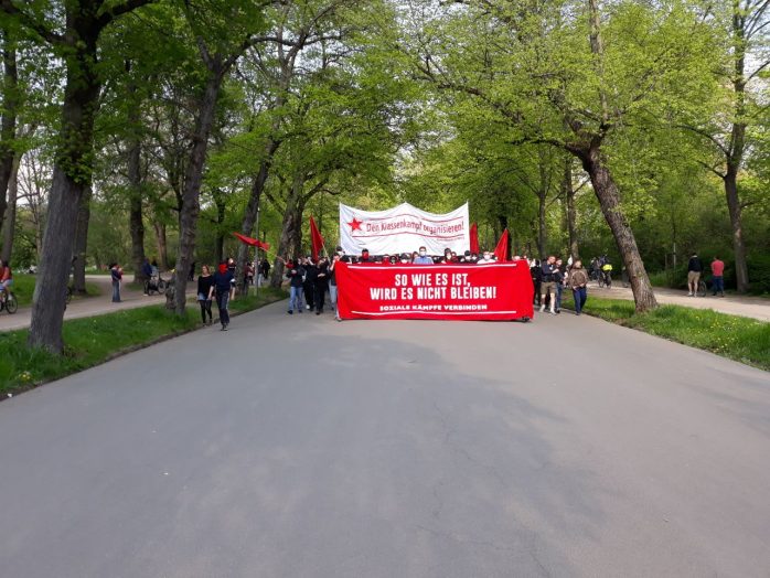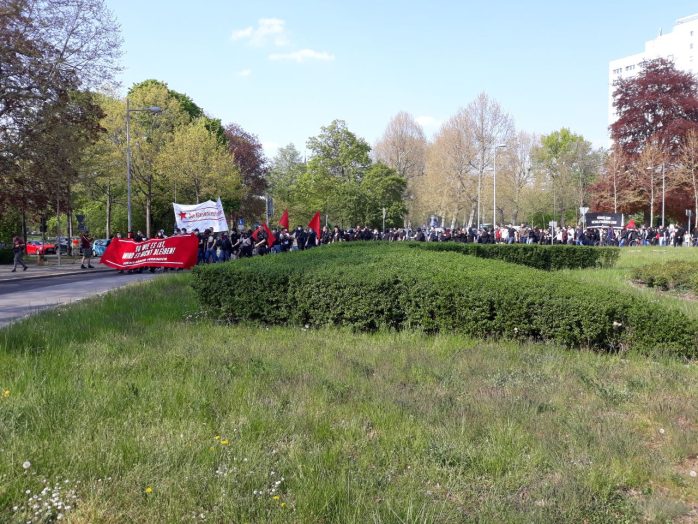 15 bis 21 Uhr, Anzeigender: natürliche Person, Aufzug „Kampftag der Arbeiterklasse“ mit ca. 100 TeilnehmerInnen auf folgender Route: Südplatz (Sammlung & Auftakt) – Karl-Liebknecht-Straße – Peterssteinweg – Wilhelm-Leuschner-Platz – Roßplatz – Augustusplatz – Grimmaischer Steinweg – Johannisplatz – Dresdner Straße – Wurzner Straße – Torgauer Straße – Eisenbahnstraße – Hermann-Liebmann-Straße – Konradstraße – Rabet (Grünfläche am äußerst westlichen Ende der Konradstraße) (Abschluss & Beendigung).