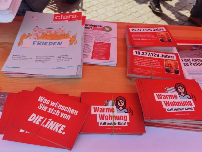 Hier ist die Stimmung auch gegen die SPD-Grünen-FDP-Regierung manifester Bestandteil der Ausführungen, auch diese würden „Politik für die Unternehmen und Reichen“ machen.