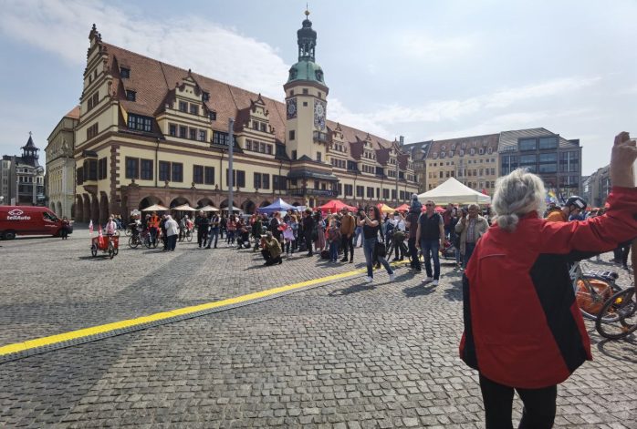 15 bis 16 Uhr, Anzeigender: natürliche Person, Fahrradaufzug unter dem Motto „Friedensfahrt für unsere Partnerstadt Kiew“ mit ca. 500 TeilnehmerInnen auf folgender Route: Simsonplatz (Sammlung & Auftakt) – Beethovenstraße – Harkortstraße – Martin-Luther-Ring (Außenring) – Wilhelm-Leuschner-Platz (Außenring) – Roßplatz (Außenring) – Augustusplatz (Außenring) – Georgiring (Außenring) – Willy-Brandt-Platz (Außenring) – Tröndlinring (Außenring) – Ranstädter Steinweg – Jahnallee – Waldplatz – Waldstraße – Leutzscher Allee – Am Sportforum – Jahnallee – Wende Höhe Capastraße – Jahnallee – Ranstädter Steinweg – Goerdelerring (Außenring) – Dittrichring (Außenring) – Martin-Luther-Ring (Außenring) – Harkortstraße – Beethovenstraße – Herzliya-Platz – Anton-Bruckner-Allee (Abschluss & Beendigung Höhe Teich).
