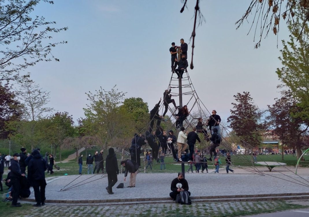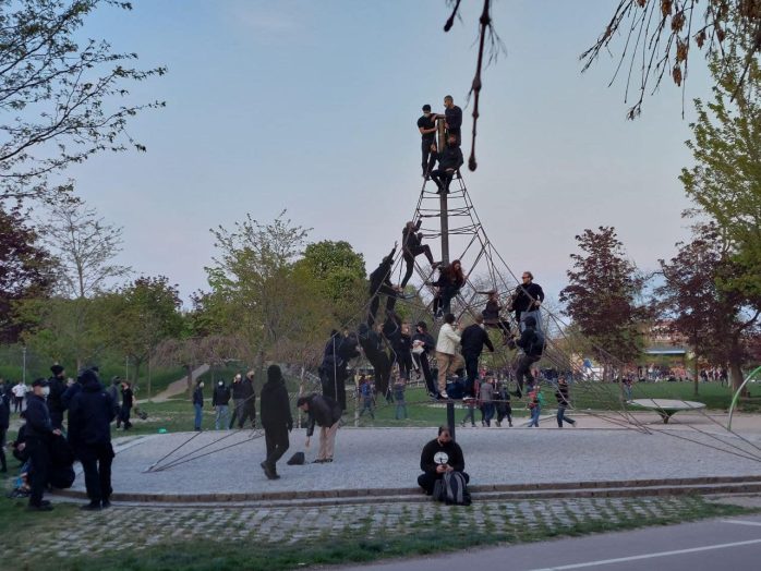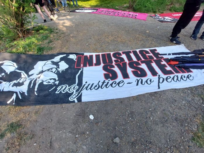 Natürlich gab es die entsprechende (verbale) Reaktion mit „Policia Assassini“, was letztlich bedeutet, dass Polizisten, zumal hinterhältige, Mörder sind, doch auf der Straftatenliste findet sich bislang eine Null. Derzeit zumindest hängen einige Demoteilnehmer/-innen offenbar lieber in Seilen ab, als dass sie sich noch mit irgendwelchen bösen Dingen befassen würden.