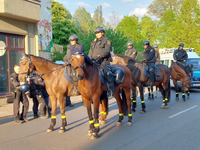 Ein Redner der Demo hatte in einem durchaus auch selbstkritischen Beitrag zum Beginn der Demonstration am Ende auch den Polizeibeamten neben den eigenen Demonstrationsteilnehmern einen schönen Abschluss des 1. Mai gewünscht – der Tonfall war dabei keinesfalls aggressiv.