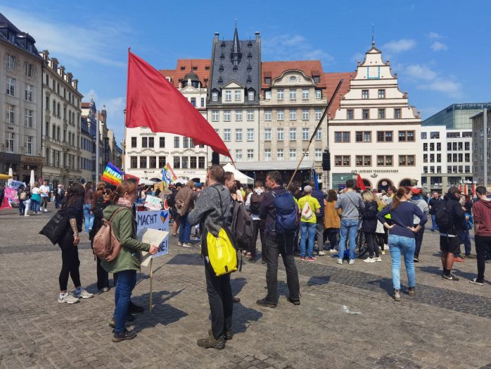 Waren am gestrigen Samstag noch vorrangig Umweltthemen der Gegenstand von Demonstrationen, Einweihungen wie die der „Warming Stripes“ auf der Sachsenbrücke oder der Krieg in der Ukraine mit einer etwa 400 Teilnehmer/-innen starken Demonstration auf dem Leipziger Ring, dominieren den heutigen 1. Mai in Leipzig vor allem Kapitalismuskritik, Kriegsablehnung und Gerechtigkeitsfragen. Den Auftakt machte der DGB und ab 15 Uhr stehen gleich drei verschiedene linke Demonstrationen an, eine ab Zentrum, eine aus dem Süden und eine im Leipziger Osten. Überschattet wurde der Tag bislang von Gewalt Rechtsextremer außerhalb Leipzigs.