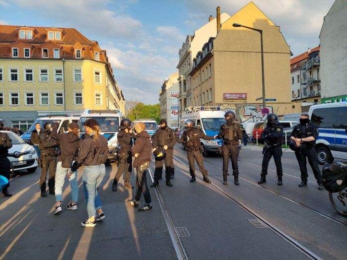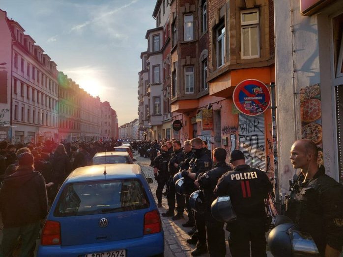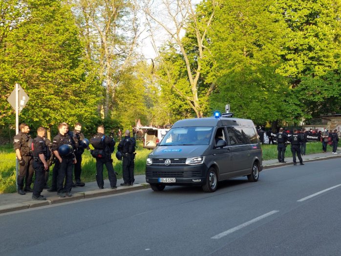 Danach scheint es noch einige Probleme mit der Fortsetzungsroute zu geben, die Richtung Kohlgartenstraße/Dresdner Straße zum Elsapark führen und dort gegen 21:30 Uhr enden soll.