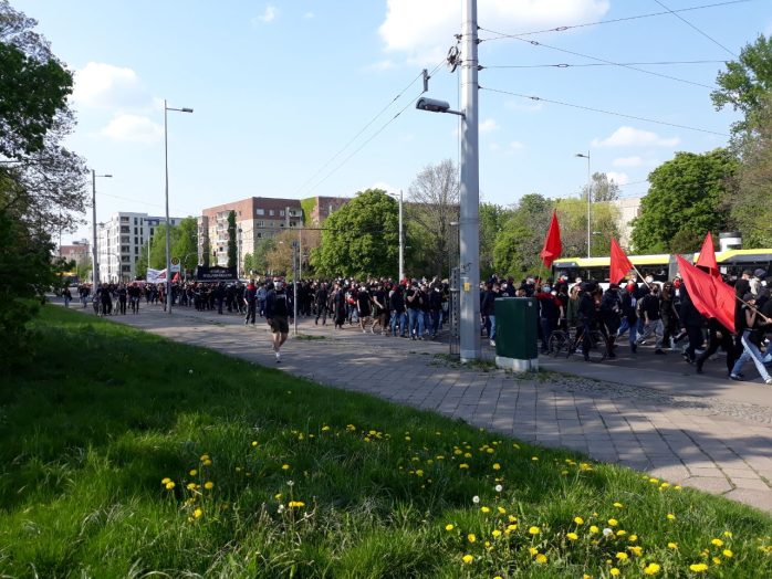 Nun soll ab 17:30 Uhr die letzte Demonstration des heutigen 1. Mai mit einer Kundgebung am Liselotte-Herrmann-Park (Zweinaundorfer Straße) unter dem Motto „Heraus zum anarchistischen 1. Mai!“ beginnen.