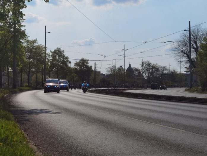 Natürlich hat es auch damit zu tun, dass der 1. Mai gern auch mit Gewalt verbunden ist, Gewalt, die heute bislang vollständig ausblieb in Leipzig, wie auch Polizeisprecher Olaf Hoppe gegenüber LZ vor Ort erklärt. Bliebe also noch diese letzte Demo, welche zudem ab 20:30 Uhr in den heutigen Sonnenuntergang führt.