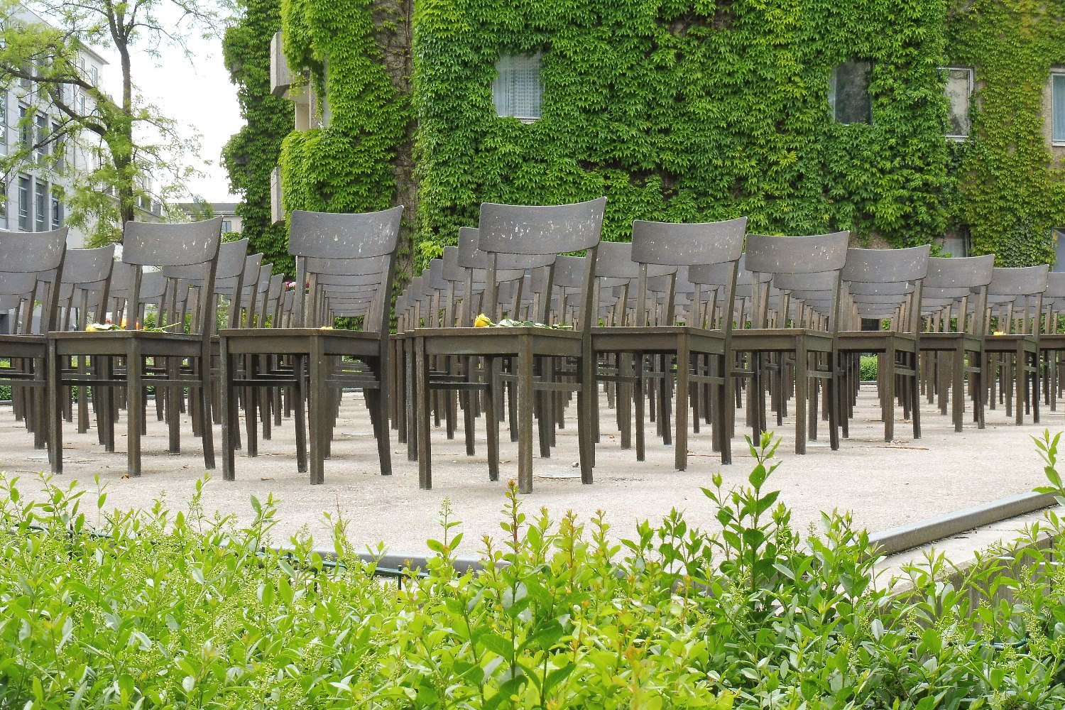 An der Kreuzung von Gottschedstraße und Käthe-Kollwitz-Straße, wo einst die große Gemeindesynagoge stand, befindet sich heute eine Gedenkstätte. Die Nationalsozialisten zerstörten die Synagoge in der Reichspogromnacht 1938. 140 Bronzestühle auf einem Betonfundament und eine Gedenktafel erinnern an die Verbrechen des NS-Regimes und an die Opfer der Shoah.