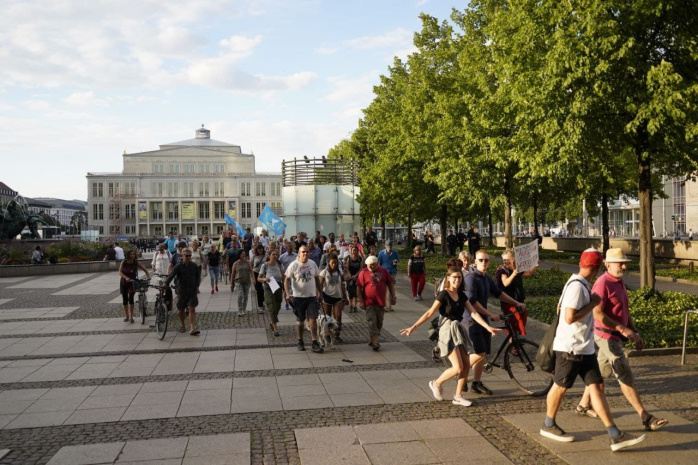 Aktuell ist die LZ vor Ort und beobachtet die ersten Geschehnisse. Erneut stehen sich auf dem Augustusplatz die fast gleichen Demonstranten gegenüber, „Platznehmen“ hat erneut nach einem Gastspiel der Band „SOKO LiNX“ vergangene Woche dieses Mal einen DJ eingeladen und unterdessen hat sich der quergedachte Demozug mit einem Frontbanner „Nordstream 2 öffnen“ auf den Ringweg gemacht und die Höhe Oper erreicht.