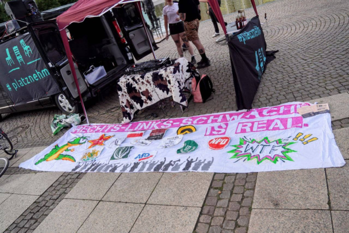 Es ist nun genau eine Woche her, als es für die „Querdenker“-getriebene Neuformierung um Anmelderin Annette H. am 1. August 2022 das erste Mal wieder nach Monaten auf dem Ring kein Weiterkommen mehr gab. Die geschätzt 88 Teilnehmenden der aus „freien Linken“, Überbleibseln von Volker Beisers „Bürgerbewegung Leipzig“ und einem ehemaligen „Bewegung Leipzig / Querdenken“-Anmelder bestehenden Ringläufer sahen sich einer dreifachen Straßenblockade gegenüber, welche die Polizei nicht beräumen konnte. Heute geht es in Runde 2, der „Platznehmen“-Bus steht seit 19 Uhr wieder auf dem Augustusplatz.