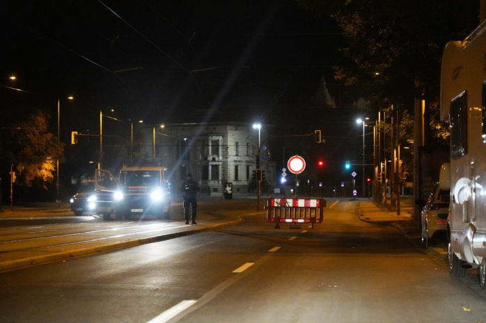 Erfahrungsgemäß eher eine Frage, wie lange es dauert, das betroffene Gebiet wirklich menschenleer zu bekommen. Der Innenstadtring ist ab Höhe Gewandhaus in südlicher Richtung gesperrt, in der Stadt sind überall Absperrbänder und Polizeibeamte zu sehen. Insgesamt sollen über 7.000 Bürger in ihren Wohnungen und Büros im Gebiet betroffen sein, mit Passanten und zurückgehaltenen Schaulustigen sind es sicherlich ein paar 1.000 mehr.
