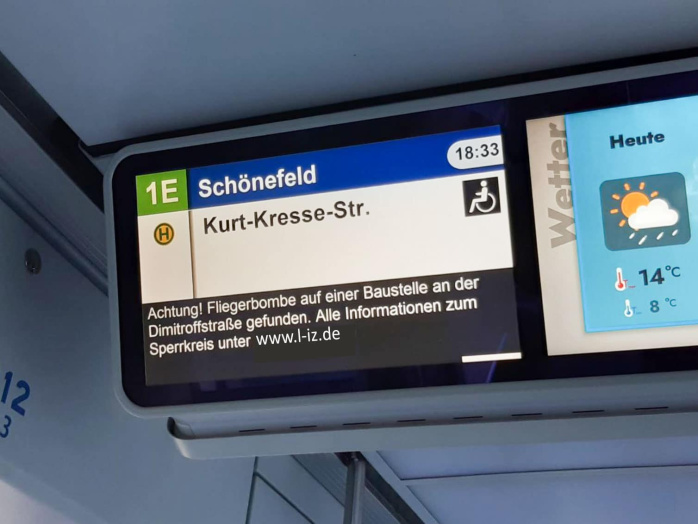 Vor etwa 15 Minuten hat die Leipziger Feuerwehr via Twitter bekannt gegeben, dass auch der Citytunnel nicht mehr befahren wird. Auf Nachfrage eines Nutzers hin antwortete sie, dass dies eine Stunde vor und eine Stunde nach der Entschärfung gelte.