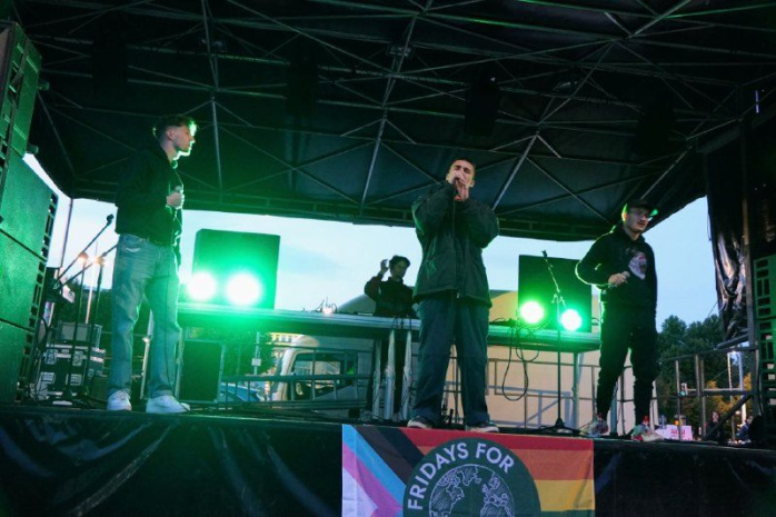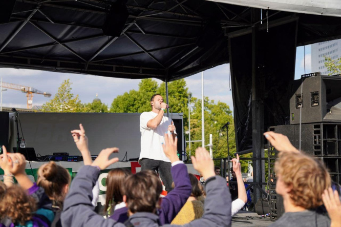 Nach äußerst vorsichtiger Schätzung unserer Reporter vor Ort deutlich mehr als 1.000 Menschen haben sich aktuell auf dem Wilhelm-Leuschner-Platz zusammengefunden, lauschen der Musik und den Redebeiträgen zum Globalen Klimastreik. Rapper Elmäx (Teil der Band „Der Plot“ ) sorgt schon mal für Stimmung.