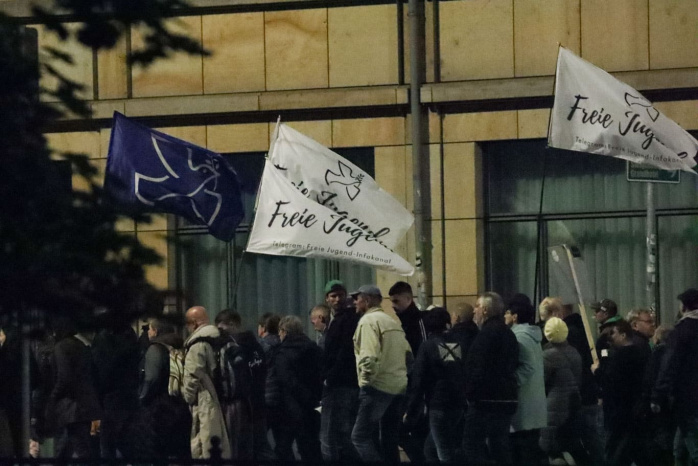 Ein Bild, das auch der Redner der „Freien Jugend“ namens „Luca“ bei seinem Redebeitrag auf der Schlusskundgebung auf dem Augustusplatz am 26.09. unter großem Beifall nutzte. So wähnt sich der Jugendliche in einer Stadt Leipzig, die „von Linksfaschismus, Gewalt von links und Hass gegen andersdenkende Menschen“ geprägt sei.