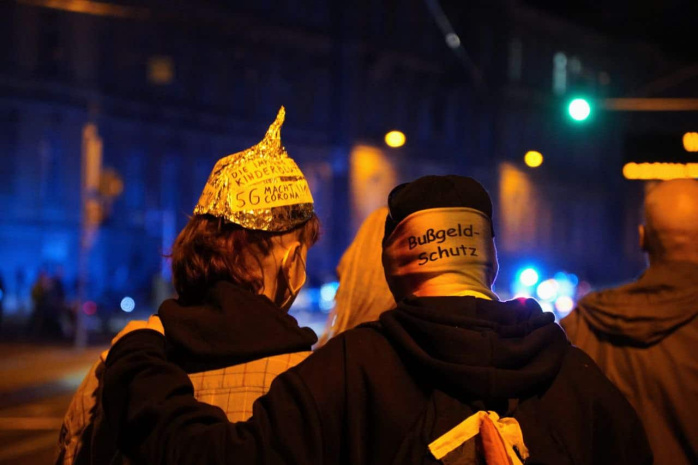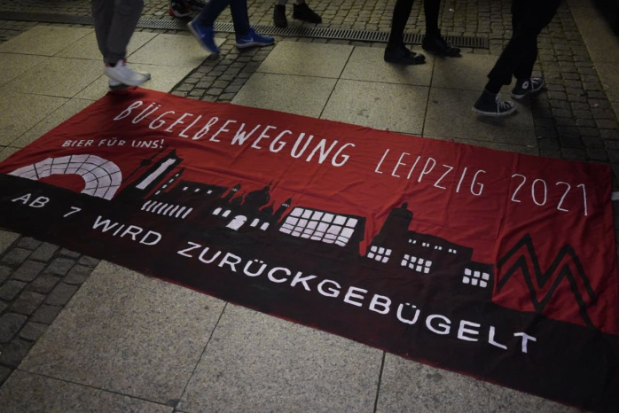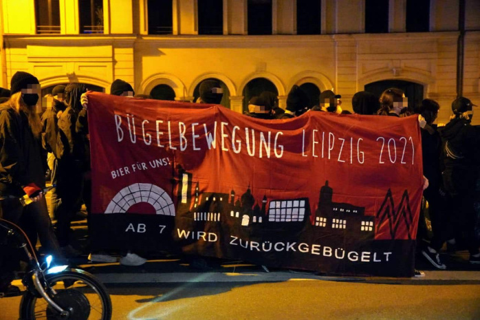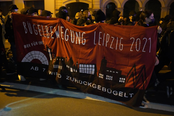 Unterdessen treffen die „Querdenker“ aktuell wieder am Ausgangspunkt ihrer Ringumrundung über die Goethestraße auf dem Augustusplatz ein. Die Stimmung hier ist gelassen und fröhlich, begleitet vom durch die Polizei ausgedünnten Gegenprotest und Rufen wie: „Ihr seid nicht der Widerstand, lauft mit Nazis Hand in Hand“.