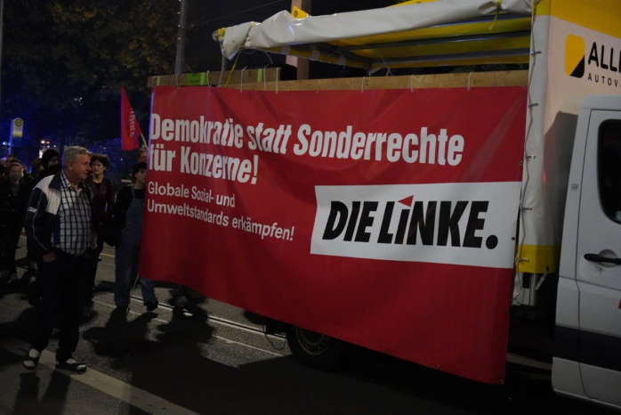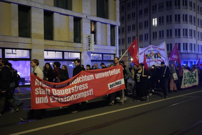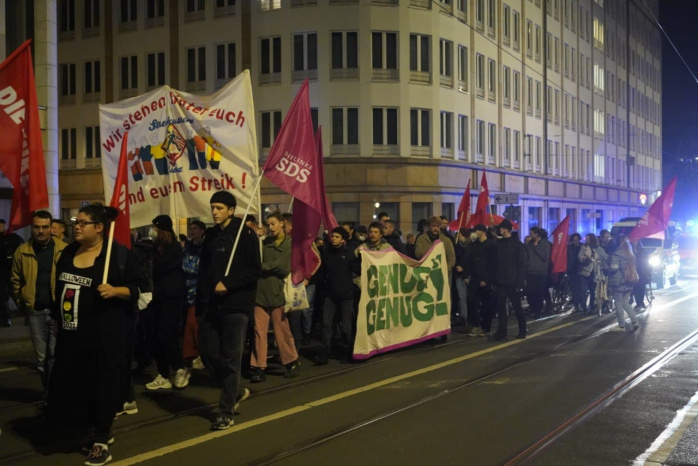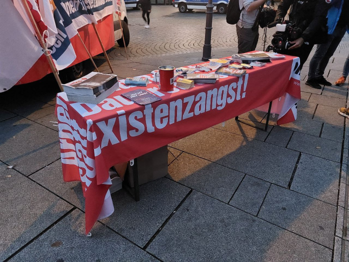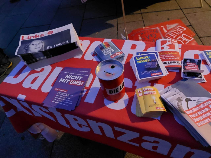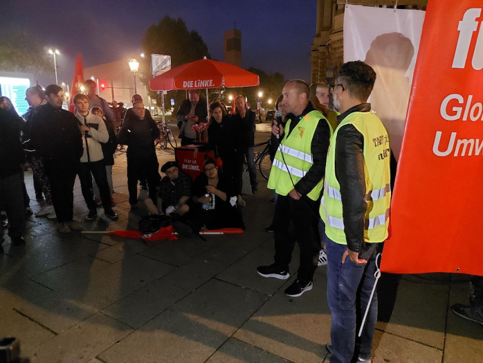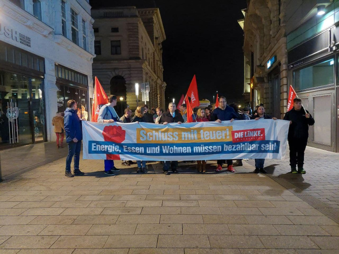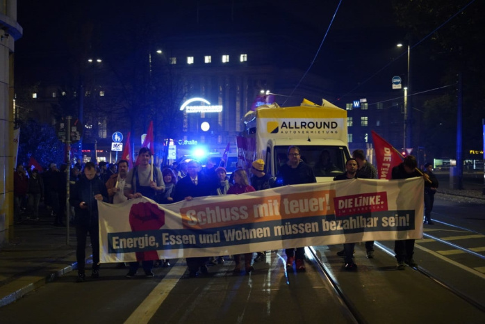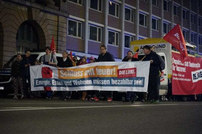 Ein wenig gruselig auch die Beteiligung bei der noch etwas früher startenden Linken-Demonstration am Wilhelm-Leuschner-Platz. Unter dem Motto „Genug ist genug“ fanden sich kaum 200 Menschen ein, um mit der Partei gegen die Härten der Politik in der Energie- und Klimakrise vor allem gegenüber den ärmeren Menschen im Land zu protestieren.