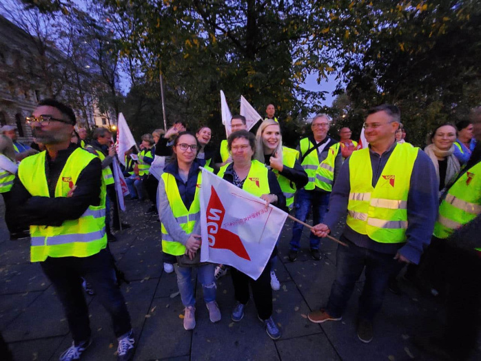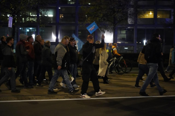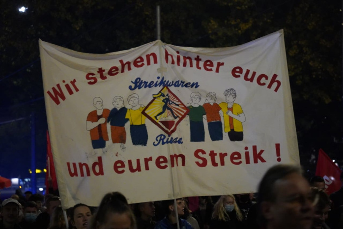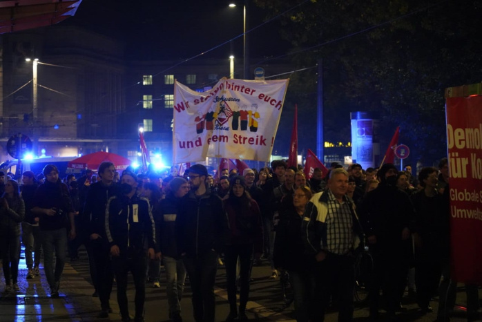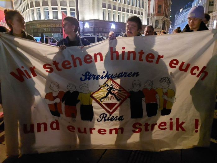 Mit dabei auch die Gewerkschaft Ver.di und die Streikenden der Riesaer Nudelfabrikation, als es für diese Demo einmal durch die Leipziger Innenstadt zum Marktplatz ging.
