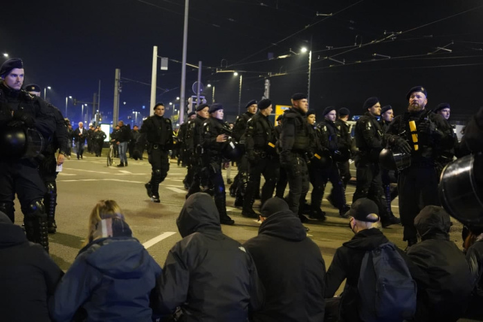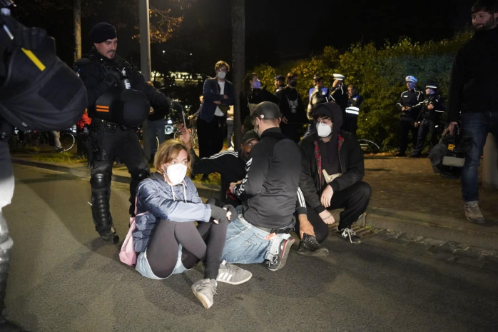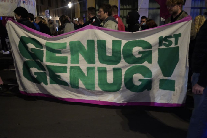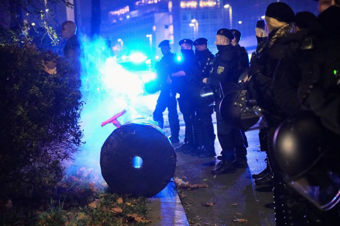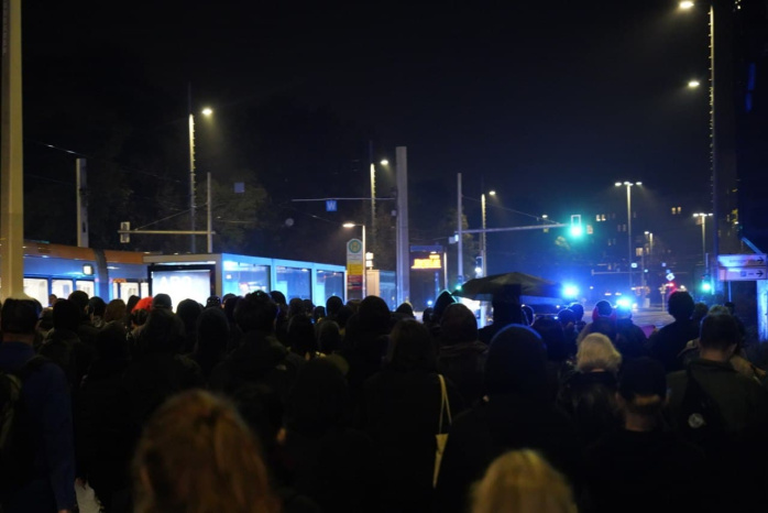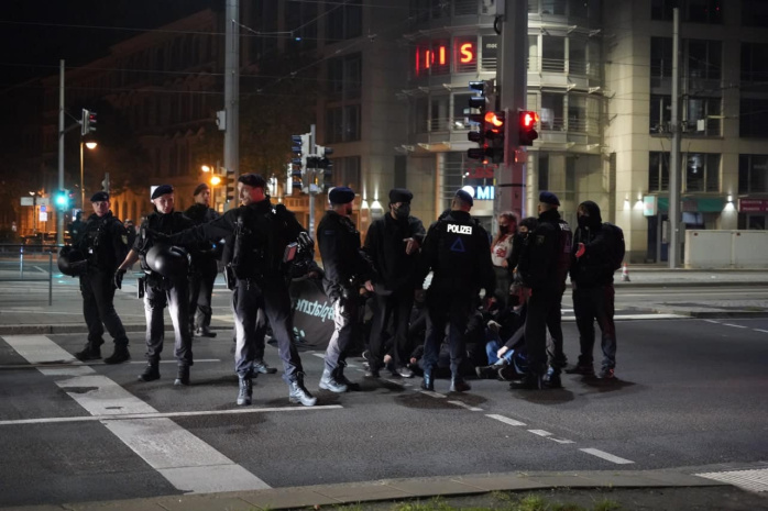 … bekommt auch an diesem Montag der Gegenprotest zu essen. Wie viele Menschen sich derzeit genau in polizeilichen Maßnahmen befinden, ist noch nicht zu sagen. Am Goerdelerring soll es zu körperlichen Auseinandersetzungen mit der Polizei gekommen sein, eine Person soll in einer Maßnahme kollabiert sein. Noch ist diese Info nicht genau geprüft, da die Beamten die Maßnahmen abschirmen.