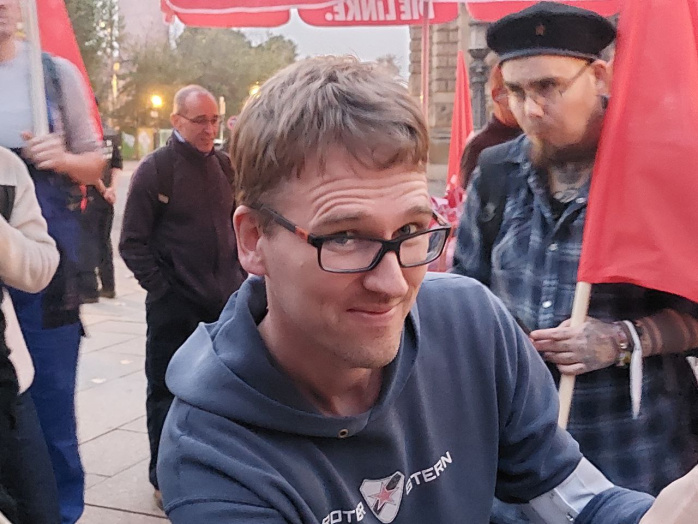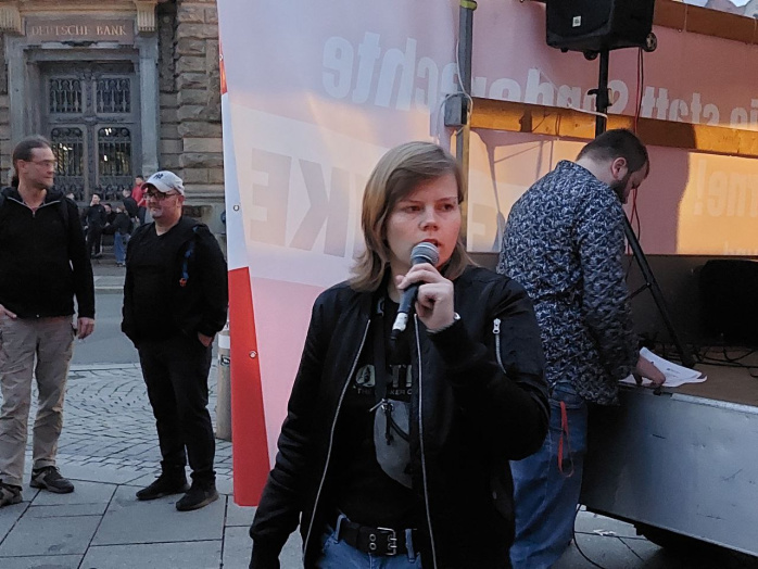 Prominentester Redner bei dieser Versammlung war sicherlich Sören Pellmann, welcher auf dem Marktplatz die derzeitige Politik von SPD, Grünen und FDP ins Visier nahm (siehe Video).