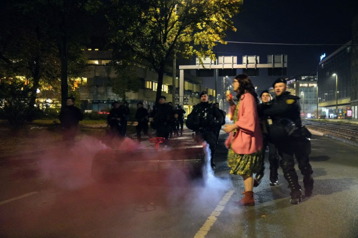 Wie es heute weitergeht, ist also gänzlich offen. Normalerweise sind friedliche Blockaden, wenn sie vor Ort angemeldet werden, als normale Versammlungen zu behandeln. Auflagen, welche das Ordnungsamt aussprechen kann, lauten dann zwar eventuell, die Versammlung auf dem Gehweg fortzusetzen, doch bis zu diesen Entscheidungen vergeht Zeit.
