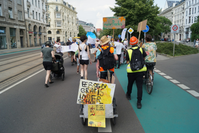 Auch die Erwachsenen hatten Forderungen, wie zum Beispiel „Mehr Geld für den sozialen Sektor“, „Geringere Mieten“ und „Mehr Geld für die Kinder“. Viele von ihnen waren als Eltern und Bezugspersonen der Kinder dabei oder Menschen, die auf den Bauspielplätzen in Leipzig arbeiten.