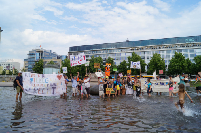 Auf dem Augustusplatz diente der Brunnen als Planschbecken, wenn auch als sehr dreckiges. Die Demo sei ein voller Erfolg, freuten sich die Veranstalter*innen. Um 16:30 Uhr wurde die Versammlung mit Snacks, Planschen und lauter Musik beendet.