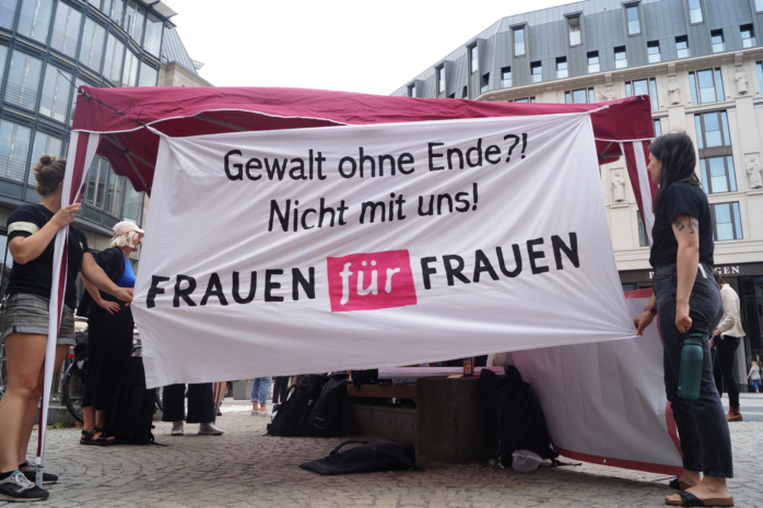 Auch grundlegende Probleme kritisierten die Redner*innen auf der Kundgebung und im Offenen Brief. So stelle der Mangel an bezahlbarem Wohnraum ein großes Problem für Gewaltbetroffene dar. Auch dürfe ein Frauenhausplatz nicht daran scheitern, dass die Betroffenen die 300 Euro monatlicher Nutzungsgebühr pro Person nicht zahlen könnten. Auch könne man nicht von den Frauen erwarten, dass sie ihre eigene Karriere und die Bildungschancen ihrer Kinder riskierten, weil sie in ein weit entferntes Frauenhaus ziehen müssten.