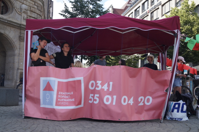 Die aktuelle prekäre Lage stelle ein großes Sicherheitsrisiko für von Gewalt betroffene Menschen dar und habe vielfältige schwerwiegende Folgen auch für die Zivilgesellschaft in Leipzig. Zur heutigen Stadtratssitzung veranstalteten sie eine Kundgebung auf dem Burgplatz, um auf die Missstände und Forderungen hinzuweisen. Ziel sei es, dass alle Betroffenen Schutz und Beratung bekommen und ihr Recht auf ein gewaltfreies Leben wahrnehmen könnten. Rund 150 Menschen nahmen an der Kundgebung teil.