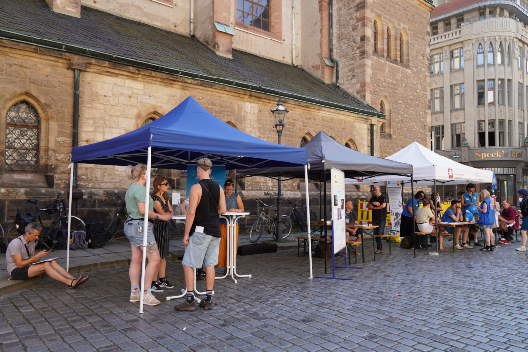 Viele Organisationen waren am Aktionstag vertreten. So zum Beispiel die Safe-Straßensozialarbeit Leipzig, die Bahnhofsmission, das Diakonische Werk, Timmi ToHelp e. V., ein Verein, der Sachspenden und Unterstützung für wohnungslose Menschen organisiert. Ebenfalls vor Ort: der Clearing und Anonymer Behandlungsschein Leipzig (CABL) e. V., die medizinische Beratung und anonyme Behandlungsscheine anbieten.