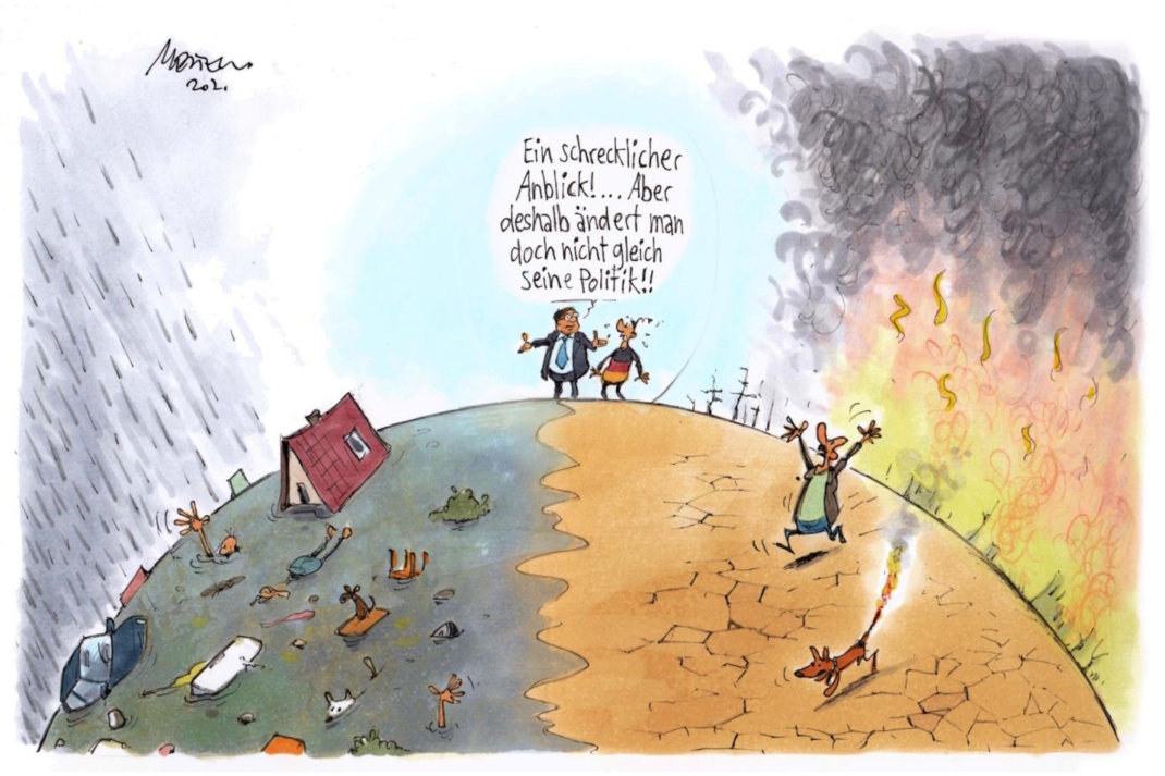 Gleichzeitig spekuliert man über massive Subventionen für energieintensive Industrien und die Grünen erweisen sich immer mehr als Lobbyisten für Konzerninteressen und nicht als Klimaschützer – obwohl der Klimawandel längst unübersehbar aus dem Ruder läuft und sich zusehends zu einer lebensbedrohlichen globalen Katastrophe auswächst.