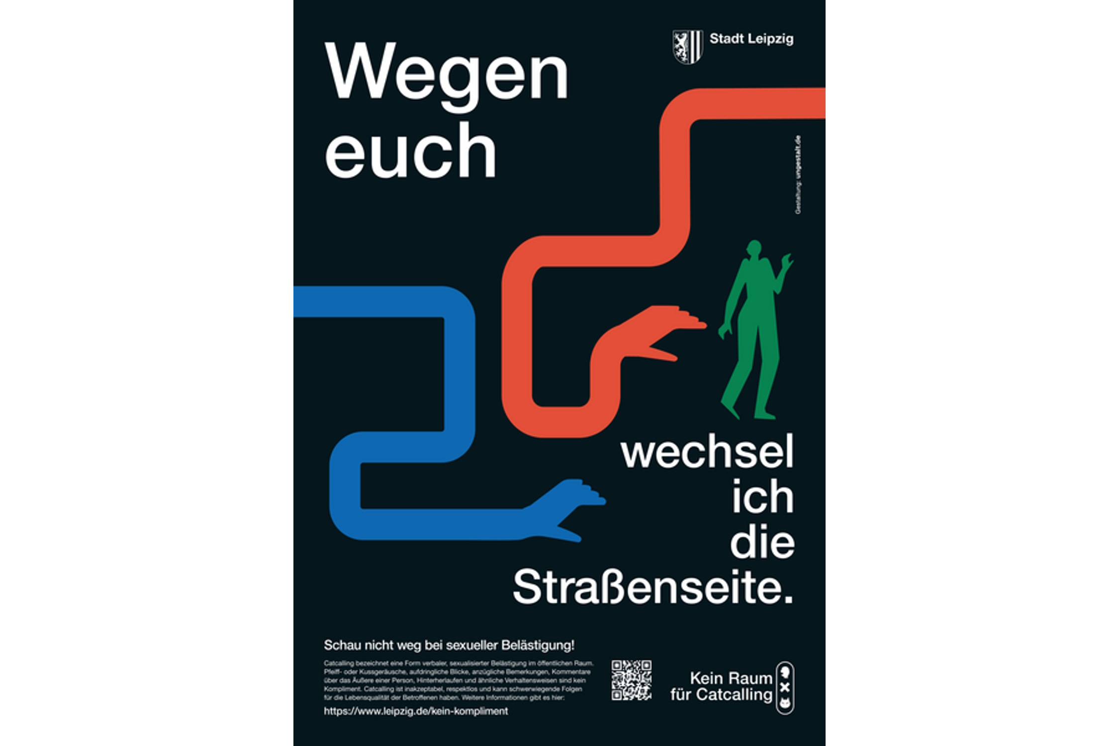 Das Phänomen Catcalling steht im Fokus der am Donnerstag, dem 2. November, gestarteten Plakatkampagne des Kommunalen Präventionsrats Leipzig (KPR) gegen sexuelle Belästigung und Übergriffe im öffentlichen Raum. Bis zum Dezember werden im Stadtgebiet sowie den Bussen und Bahnen der Leipziger Verkehrsbetriebe die Folgen verbaler Übergriffe für Betroffene zu sehen sein. Die Entwicklung der Kampagne durch die Stadt Leipzig geht auf einen Antrag des Jugendparlaments zurück.