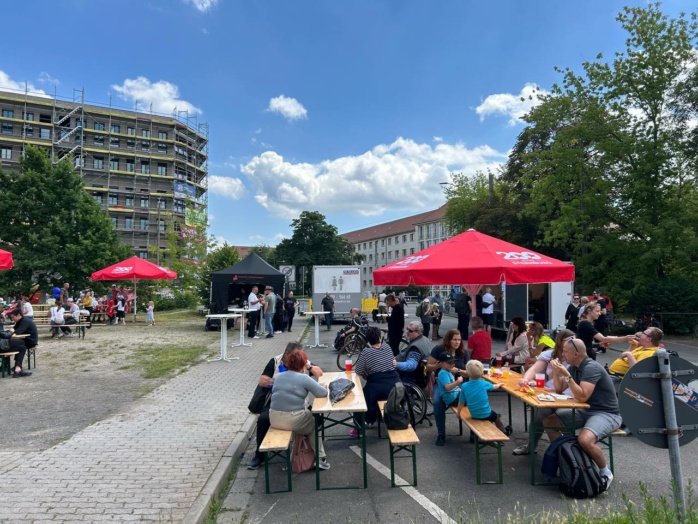 Alle, die können, sollen nach Möglichkeit vor die Tür: So die Hoffnung des örtlichen Bürgervereins an der Riebeckstraße, der anlässlich der Wahl noch ein kleines Stadtteilfest abhält. Und auch das Wetter scheint ja an diesem Juni-Sonntag gut mitzuspielen.