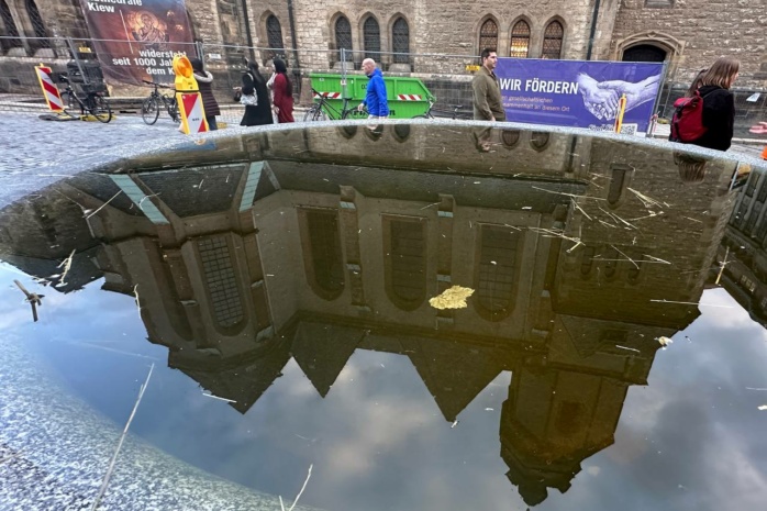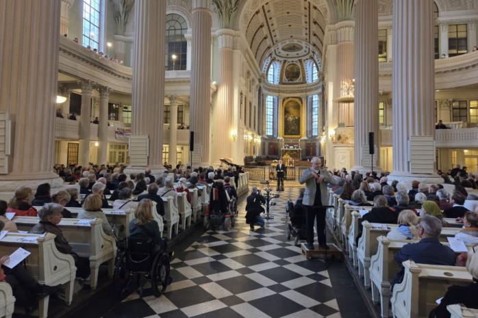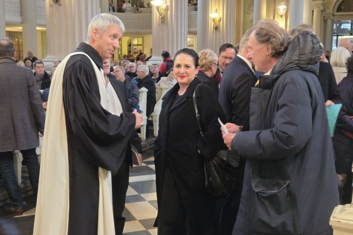 Für die Rede zur Demokratie der georgisch-deutschen Publizistin und Dramaturgin Nino Haratischwili gab es Standing Ovations. Alle acht Glocken der Kirche läuten.