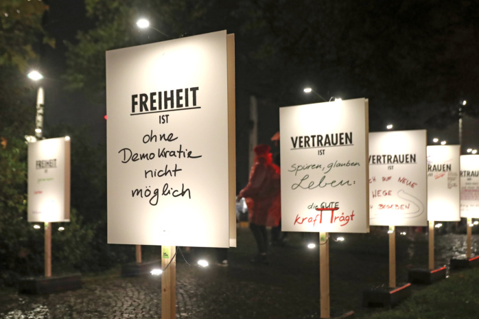 Auch in diesem Jahr erinnert das Leipziger Lichtfest wieder an die Montagsdemonstrationen vom Herbst 1989 in der DDR, die als wichtiger Wegbereiter zum Sturz des SED-Regimes und der Deutschen Wiedervereinigung gelten. Neben dem Friedensgebet und der anschließenden Rede zur Demokratie in der Nikolaikirche, die mit den Ereignissen vom Herbst 1989 so untrennbar verbunden ist, stehen fünf einzelne Lichtkunstprojekte entlang des Neumarkts und im Schillerpark auf dem Programm.Â