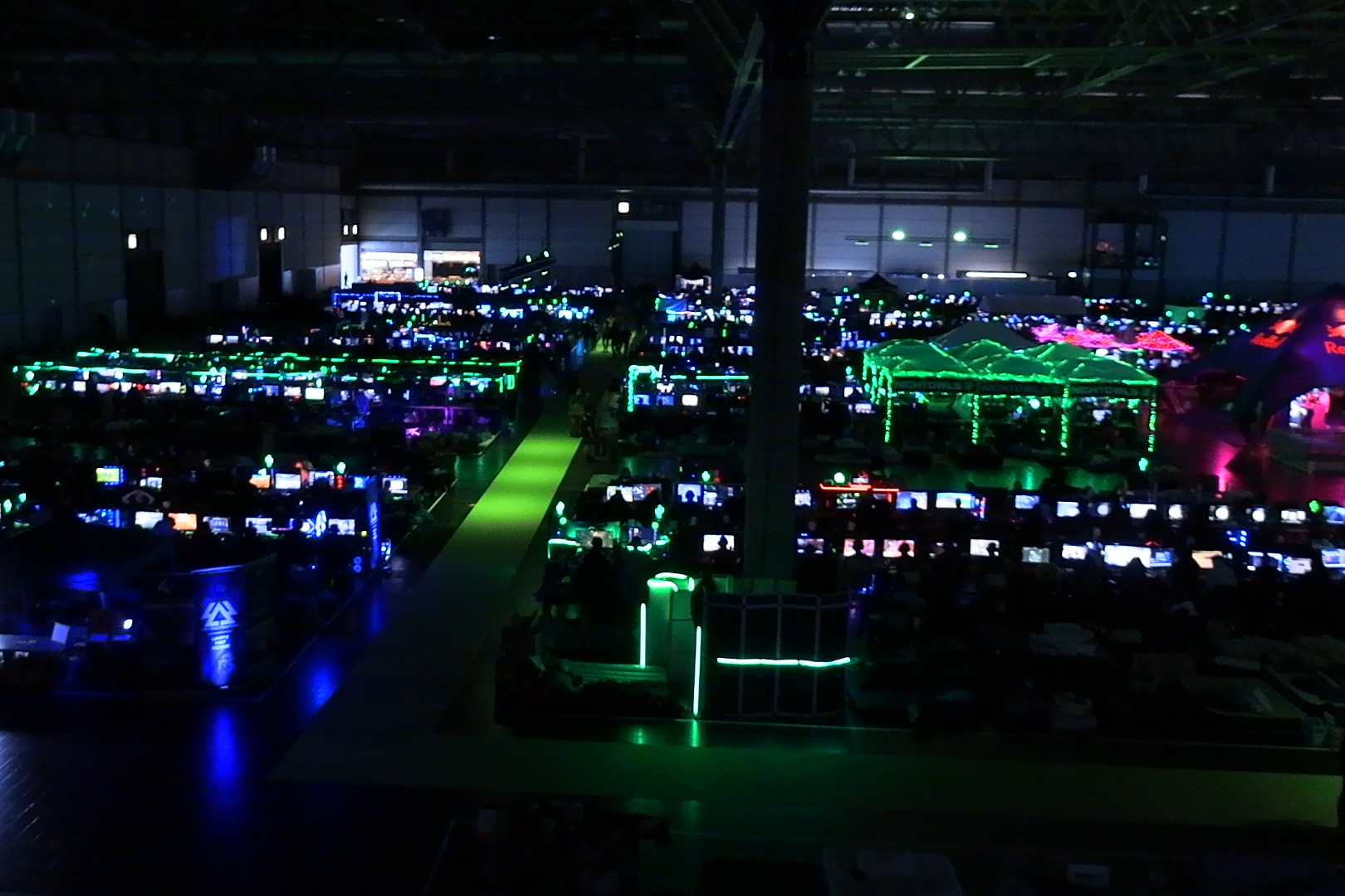 Es gab selbstverständlich einen offiziellen Presserundgang, wir sind aber lieber vor diesem zwei Stunden durch die Hallen geschlendert. Das Ergebnis ist oben zu sehen und zu lesen. Den Beginn des Rundgangs haben wir aber mitgemacht, da ging es nämlich auf die Empore über der LAN-Area. Der Blick auf diese ist schon beeindruckend, oder?