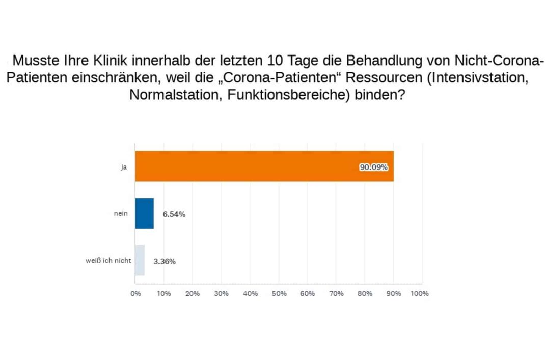 Corona verengt das Nadelöhr der Akutbehandlung: 35 Prozent der Befragten gibt an, dass es in ihrem Haus durch COVID-19 bedingte Situationen gibt, in denen sie die Behandlung von Notfallpatienten im Sinne einer Triage priorisieren mussten.
