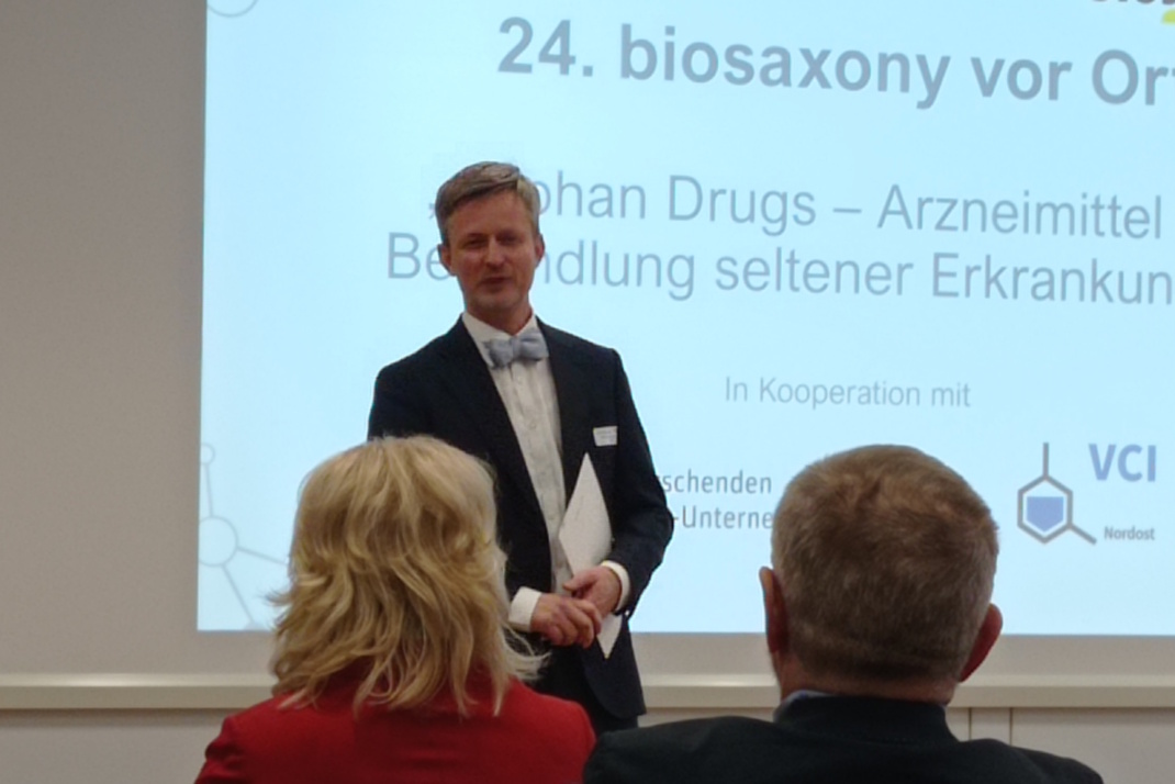 Nach einleitenden Worten von André Hofmann, CEO biosaxony, zum „24. biosaxony vor Ort – Orphan Drugs“ gab es ein Grußwort durch Staatssekretär Dr. Andreas Handschuh, Sächsisches Ministerium für Wissenschaft, Kultur und Tourismus. Er wies auf die Unterstützung der EU, des Bundes und des Freistaates Sachsens für die Erforschung von Seltenen Erkrankungen hin und betonte die Wichtigkeit der Vernetzung von Akteuren aus Biotech, Pharmazie und Medizin.