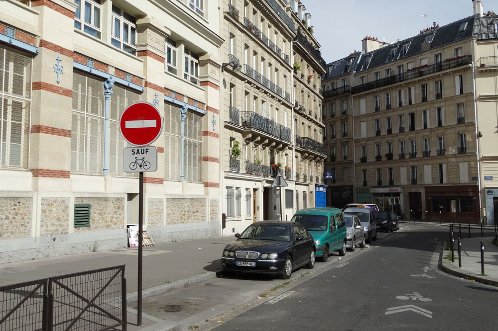 Die Sonnenstrahlen erreichen jetzt gerade so die Kuppel der Basilika, die weißen Steine leuchten richtig. Es ist im Moment nur wenig Verkehr, die meisten Straßen sind nur sehr schmal und daher Einbahnstraßen. Die bekannten roten Verkehrszeichen mit dem weißen Balken tragen unten drunter lustige Zusatzschilder – zumindest für Nicht-Französisch-Sprechende. “Sauf bicyclettes” steht drauf – “Außer Fahrräder”. Meine beiden Söhne haben dafür natürlich – voller Freude – eine Eigeninterpretation geschaffen: „Betrunkene Fahrradfahrer dürfen hier fahren!“