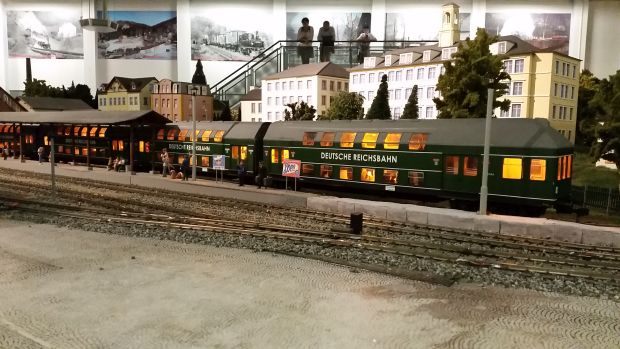 Wer alles in Miniatur erleben möchte, sollte sich dringend nach Schönfeld bei Annaberg-Buchholz aufmachen. Hier ist der historische Landkreis Annaberg um das Jahr 1980 als Modelleisenbahnanlage abgebildet. 660 Meter Gleise schlängeln sich durch die 770m² große Halle. 9,50 Euro für Erwachsene und 5 Euro für Kinder von 6 bis 16 Jahren scheinen nicht gerade ein Schnäppchen zu sein, aber in der Halle, in der regelmäßig auch Nacht im Landkreis animiert wird, lässt sich die Zeit leicht vertun. Eine Essenspause im eigens in die Halle geschobenen Bahnwaggon in Normalgröße tut Augen und Kopf gut, zu zahlreich sind die Eindrücke, die sich Meter für Meter gewinnen lassen. Kinder können mit Hockern gut über die Kante auf die Anlage schauen, die Versorgungspreise sind fair.