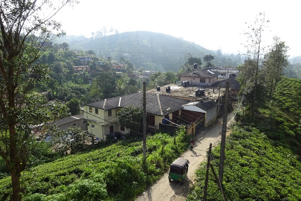 Mit dem Bus ging es zurück nach Kandy, dann weiter mit dem Zug nach Hatton, einem der höchstgelegenen Orte der Insel. Dort hatte ich eine Unterkunft gebucht, die mir Freundesfreunde in der Heimat empfohlen hatten, die zufällig vor nicht allzu langer Zeit ebenfalls dort gewesen waren. Zwar war sie selbst für Sri Lankische Verhältnisse nicht ganz preiswert, doch zahlte sich jede Rupie aus. Inmitten von Teeplantagen gelegen, bekamen wir das schönste Zimmer, das wir bis dahin auf unserer Reise gehabt hatten, inklusive Badewanne, Balkon und einem grandiosen Service mit superleckerem Essen. Doch gereist waren wir dahin nicht wegen der Unterkunft an sich, sondern wegen ihrer Nähe zu Adam’s Peak (siehe Reisebericht Sri Lanka – Teil I).